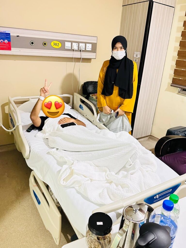 Beliau sambung lagi, “Mula-mula nak guna medical company, tapi ada sedikit masalah. Syukur sangat ada medical card personal. Terus saya bagitahu nurse, dan proses jadi mudah. Esoknya terus operation.”
